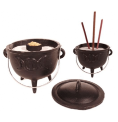 Räuchergefäß - Kombi inkl. Aromalampe & Duftlampe - Speckstein - mit Ornamenten - schwarz