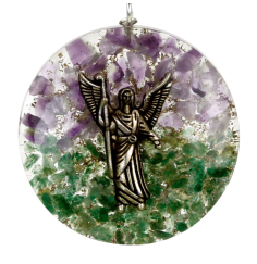 Anhänger - Orgonit - Erzengel Michael - Rund - Lapis Lazuli und Blauer Topas - ca. 4 cm