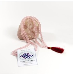 Mala - Rudraksha und Rosenquarz - mit violetter Quaste - 108 Perlen - ca. 40cm